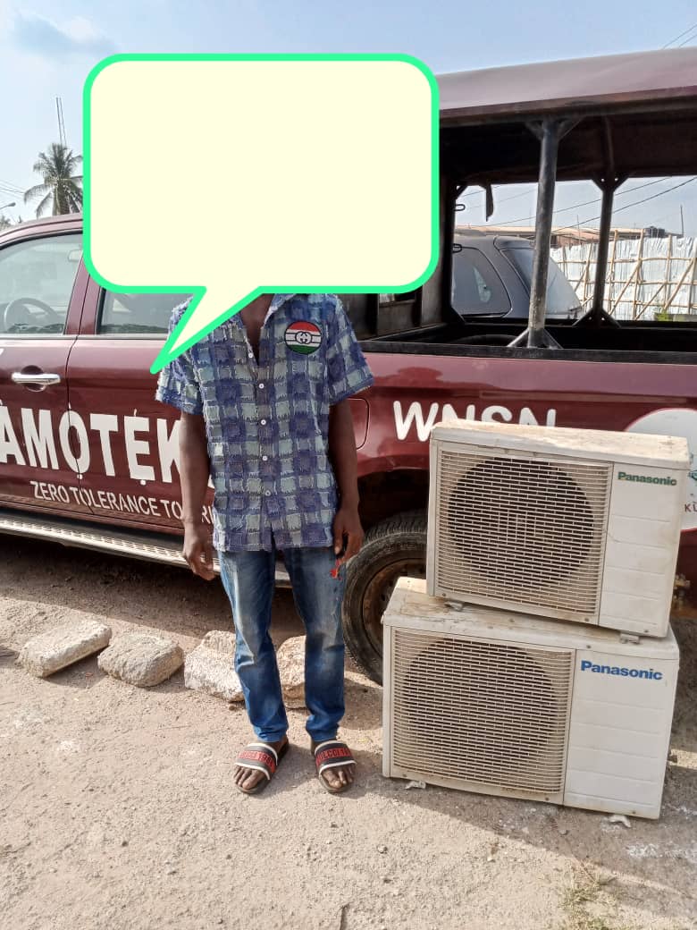 The operatives of Osun Amotekun Corps has arrested a 25 year old security man ,identified as Micheal for allegedly stealing Air conditioners.