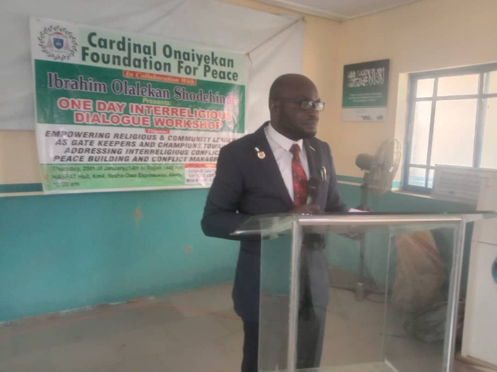 The Special Adviser to the Ekiti state governor, Alhaji Engr. Hon. Jinadu Yinusa Olalekan made this declaration at a one day interreligious dialogue workshop organized by Cardinal Onaiyekan in collaboration with Ibrahim Olalekan Shodehinde, held at NASFAT auditorium in Akure, the Ondo state capital.